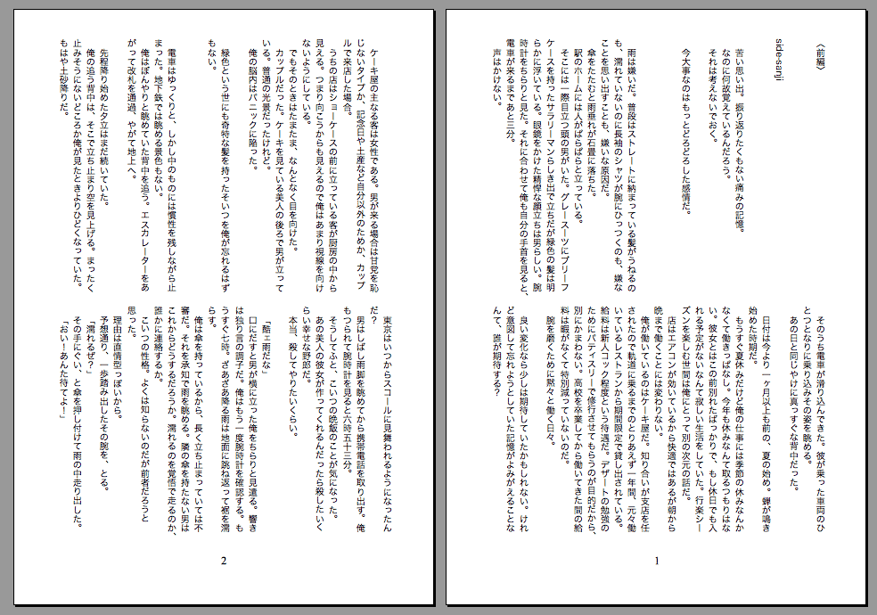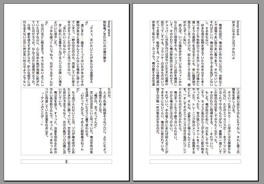 | 「快楽、その先」 |  | コピー本。R18/A5/P8/無料配布/2011,7,17発刊(在庫あり) きどふど。サイトにアップしている同タイトルの前編のみです。 話は全く同じ。ペーパー代わりにどうぞ。 別の見所:紙が無駄に上質。自前製本なので好き勝手な仕様。 |